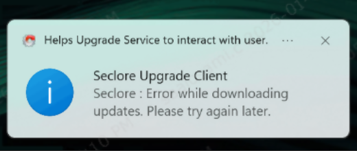 2026-02-19 13:43:48.794 : 7236 : 9084 : INFO : Component.cpp(873) : CComponent::DownloadInternal returned -129023 for component 'Seclore.ClassificationMigration'.Cause